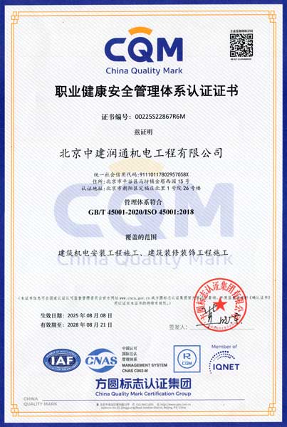 職業(yè)健康安全管理體系認證證書