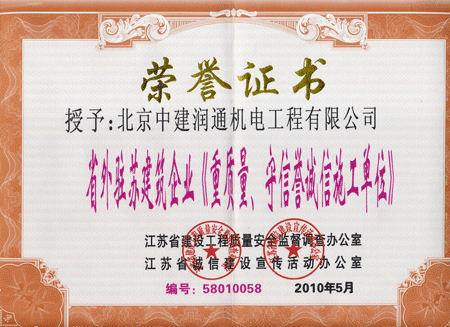 江蘇省重質(zhì)量、守信譽(yù)誠信施工單位證書