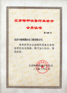 2003年特種設(shè)備行業(yè)協(xié)會會員證書