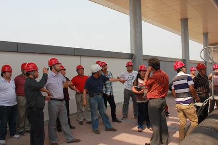 海航項目即將竣工,工作任務(wù)極其繁重,但為了起到參觀學(xué)習(xí)的效果,項目管理人員不辭勞苦,在參觀過程中,主管工長耐心講解了各系統(tǒng)的系統(tǒng)構(gòu)造、工作原理、施工難點,并解答提出的各種問題,使參觀人員直觀的了解了機電安裝的細(xì)部內(nèi)容。